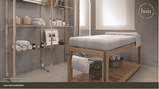 “O conceito deste apartamento trabalha uma linguagem com um clima mais natural, com formas orgânicas, texturas e acabamentos que remetem ao bem-estar e à natureza.”
