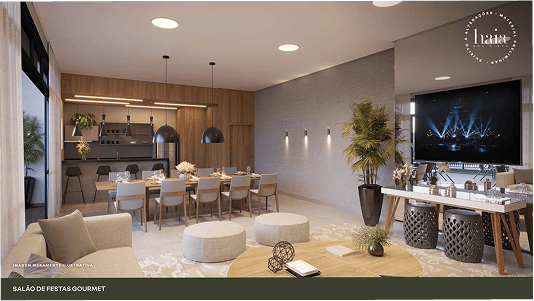 No Haia Boa Vista, você tem um salão de festas com piscina privativa para amigos e convidados. Um espaço de 348m² com dois ambientes integrados para celebrar momentos inesquecíveis.